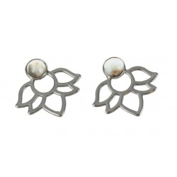 Boucles d'oreilles Aventurine Verte Perle et Lotus Métal argenté